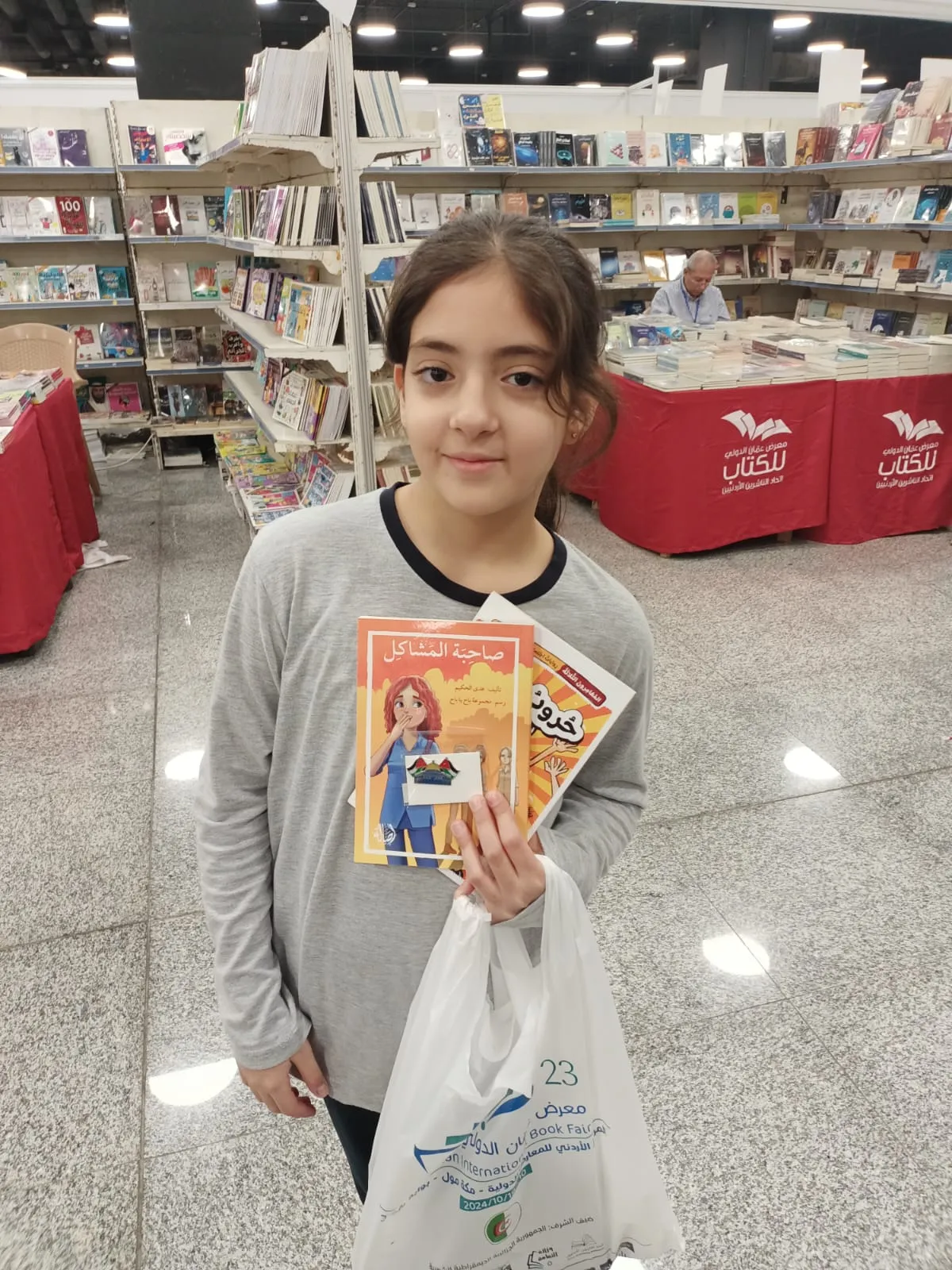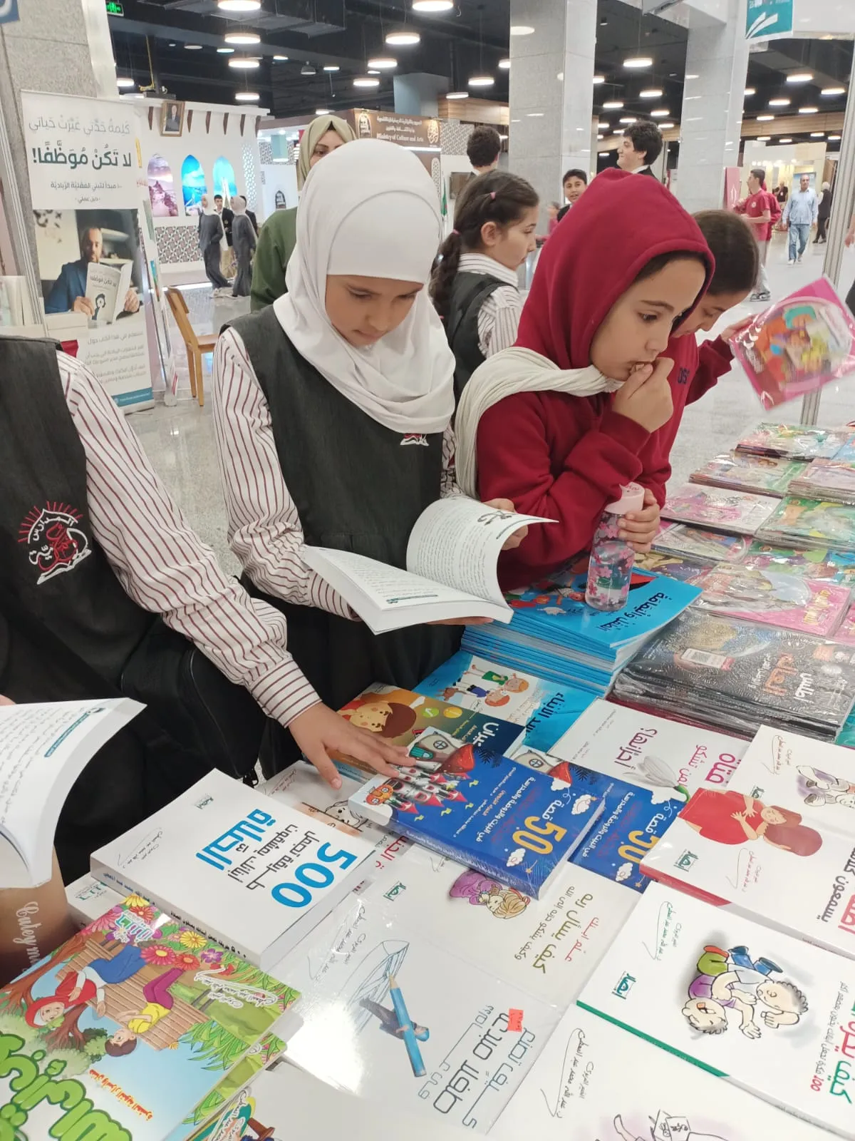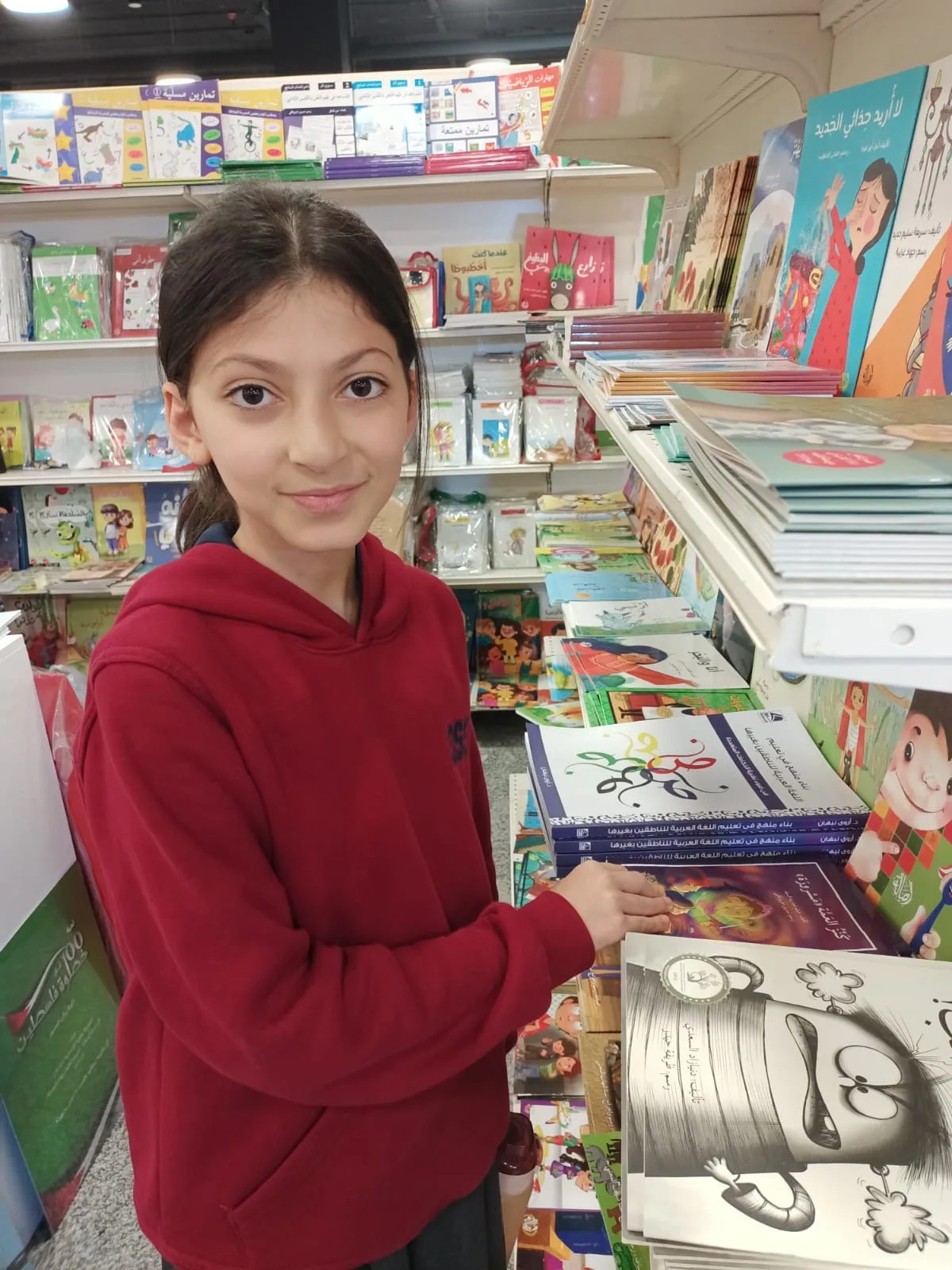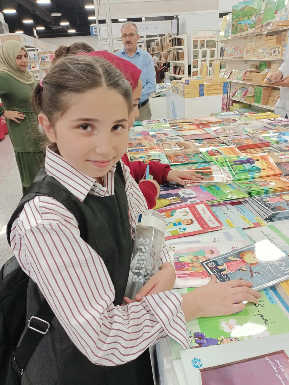 قامت أمينة المكتبة و معلمة اللغة العربية باصطحاب لجنة أصدقاء المكتبة من طالبات الصف الرابع و الخامس لزيارة معرض الكتاب الدولي لتعزيز القراءة لدى الطالبات، حيث تعرفن على أسماء بعض دور النشر من بلدان مختلفة و قد قامت الطالبات بشراء القصص المختلفة باللغتين العربية و الإنجليزية.