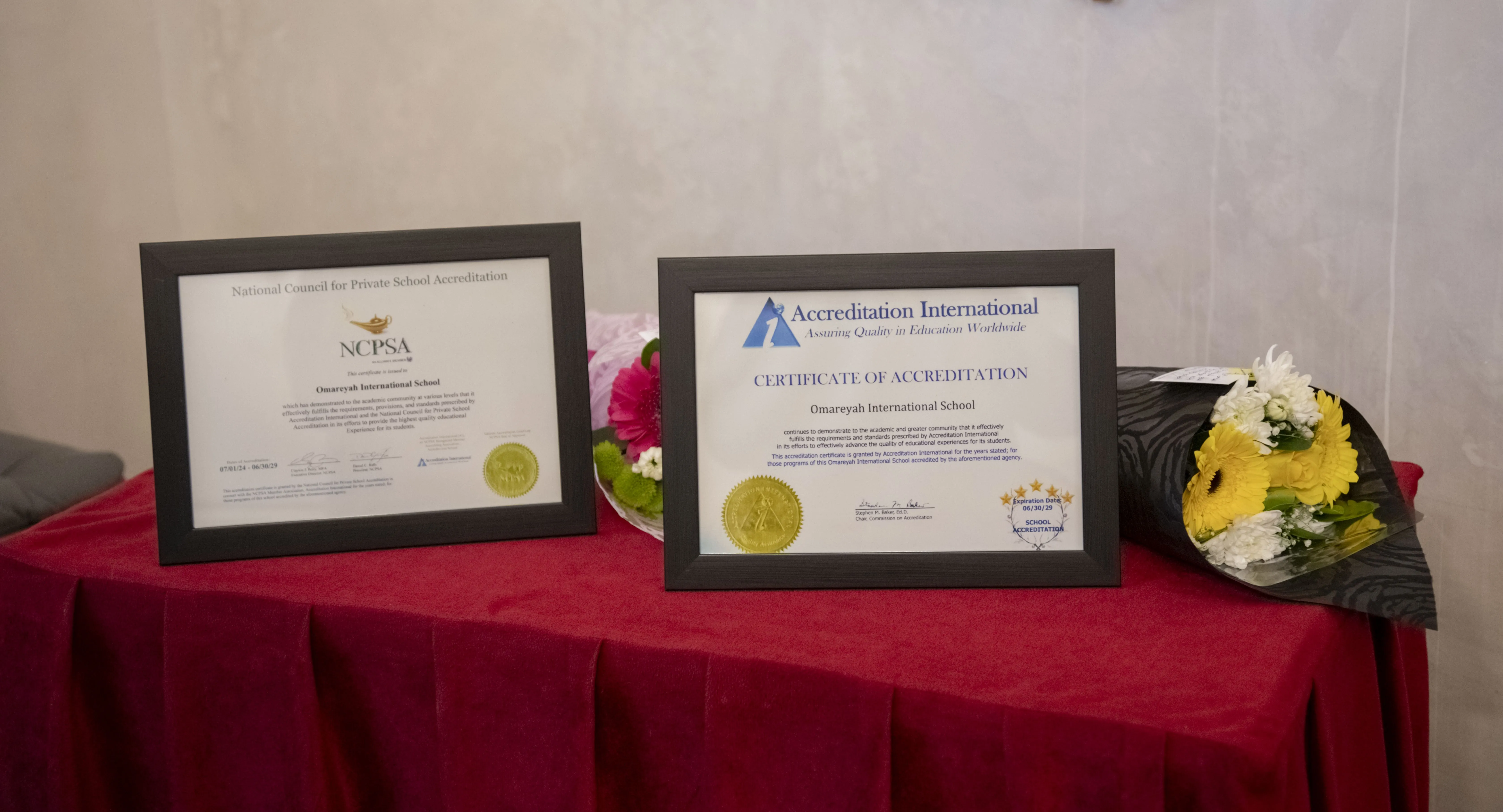أقامت المدارس العمرية احتفالًا بمناسبة حصولها على اعتماد Accreditation International Organization لتدريس البرنامج الأمريكي AHSD.
