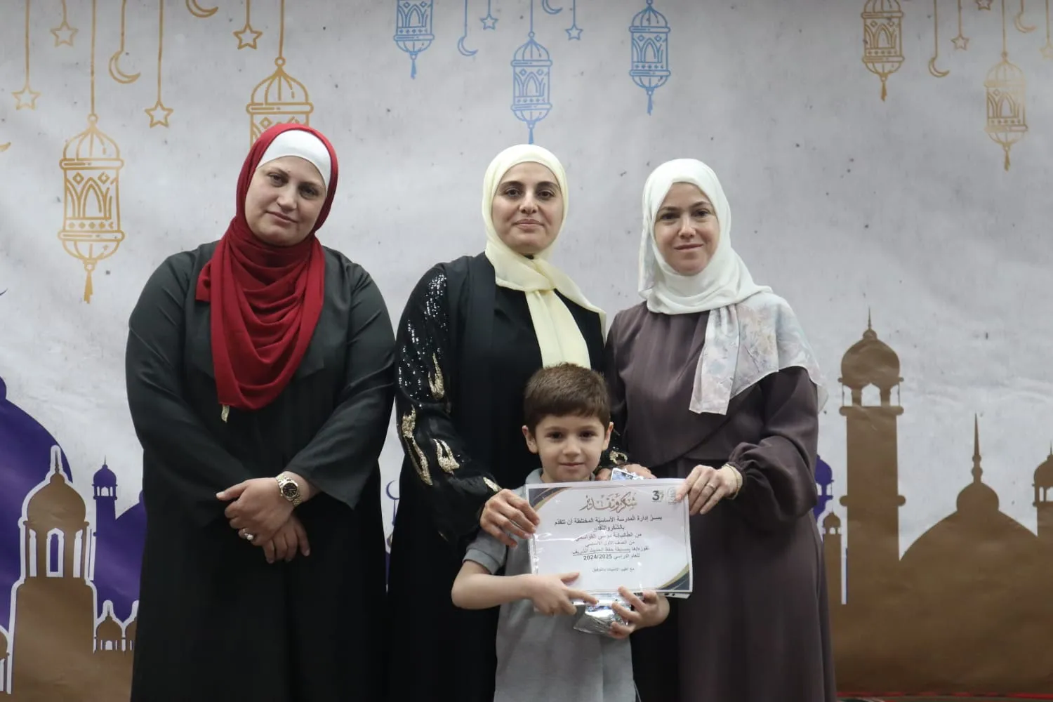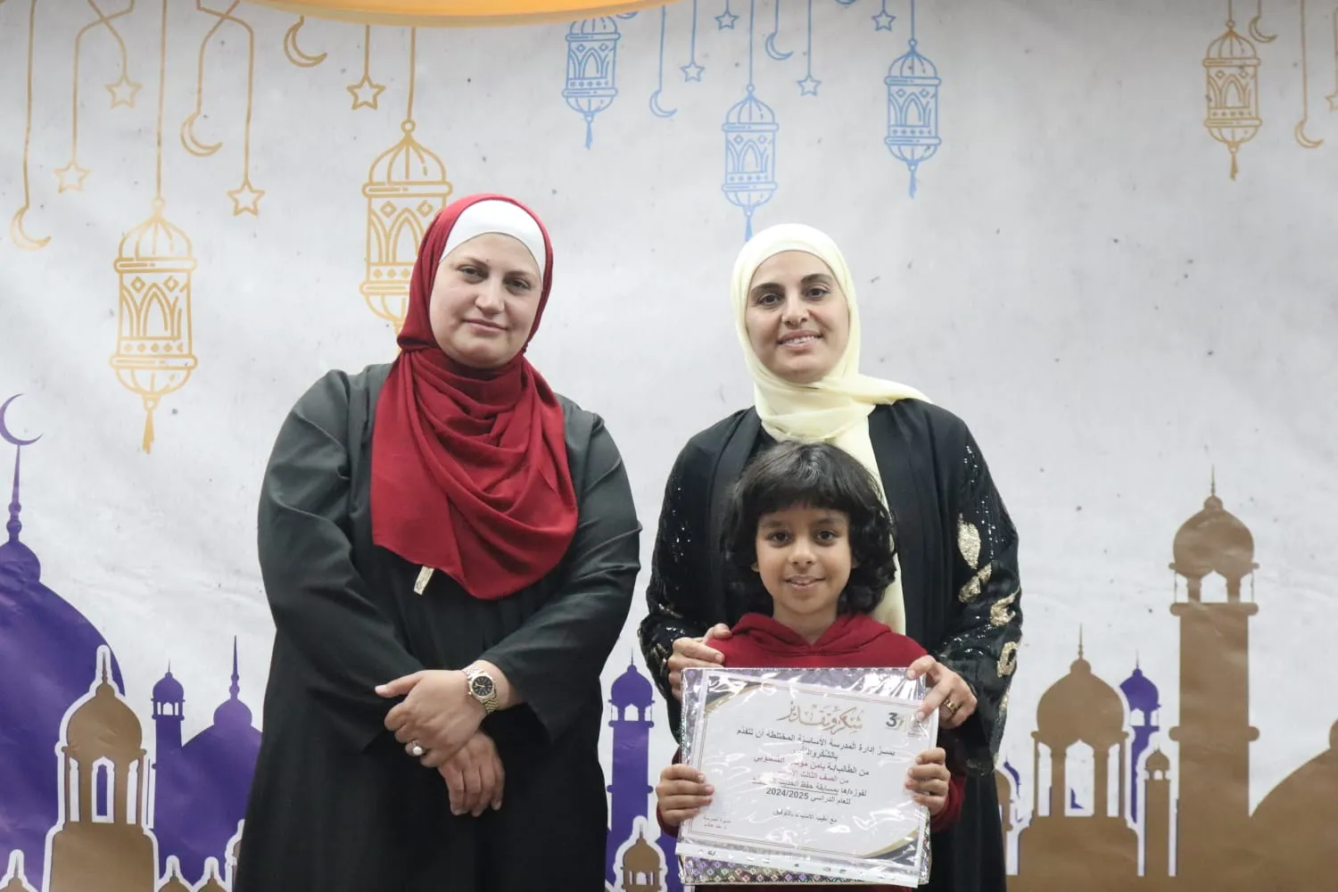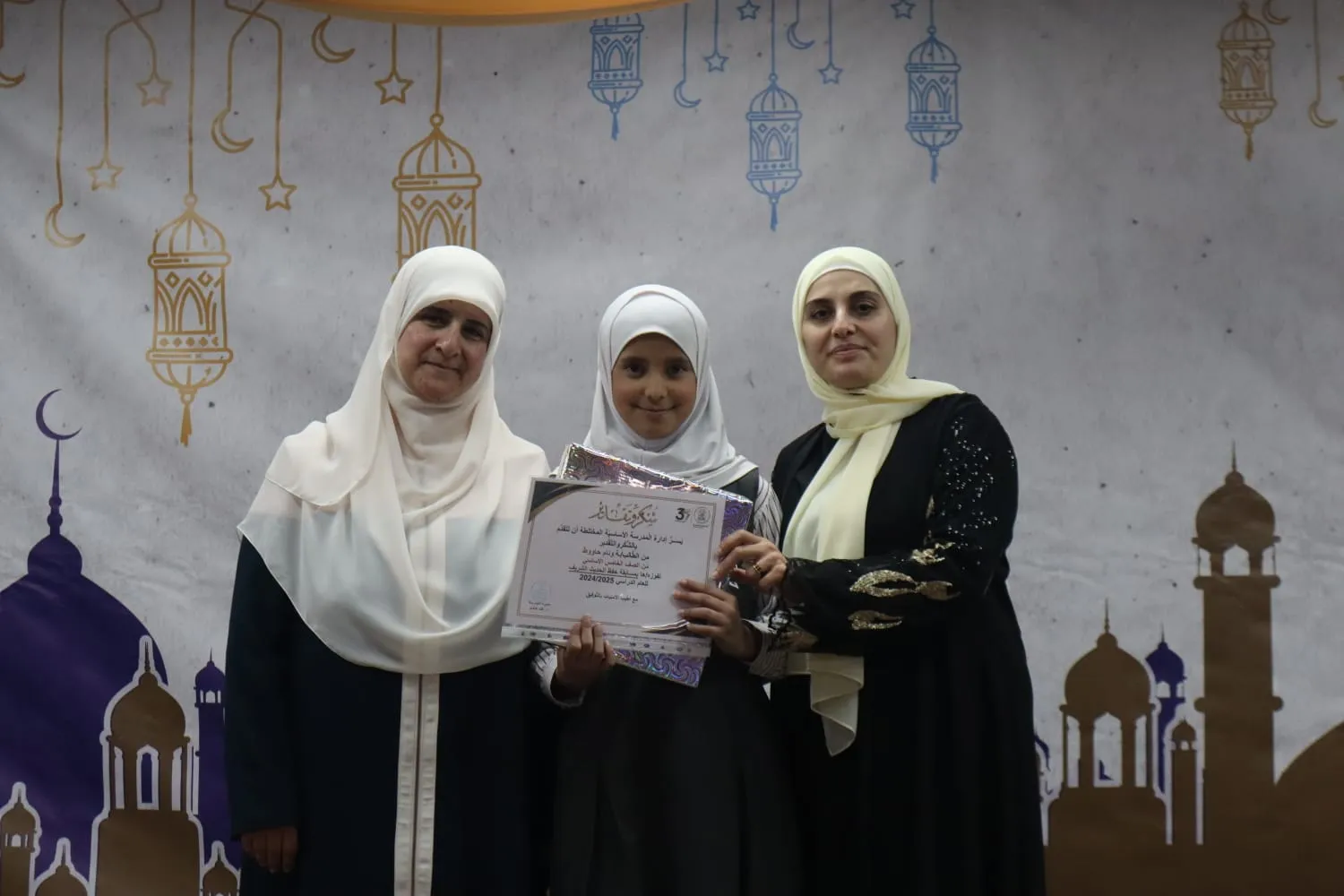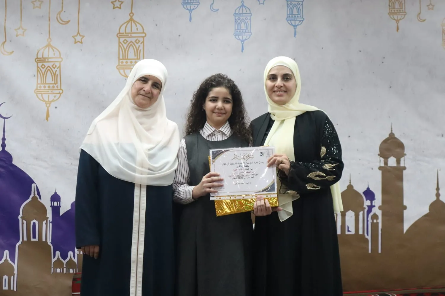 وكرمت مديرة المدرسة الطلبة الفائزين والذين بلغ عددهم في مسابقة حفظ الحديث النبوي الشريف 157 طالبا وطالبة و 4 طلبة في مسابقة مقرئ العمرية..