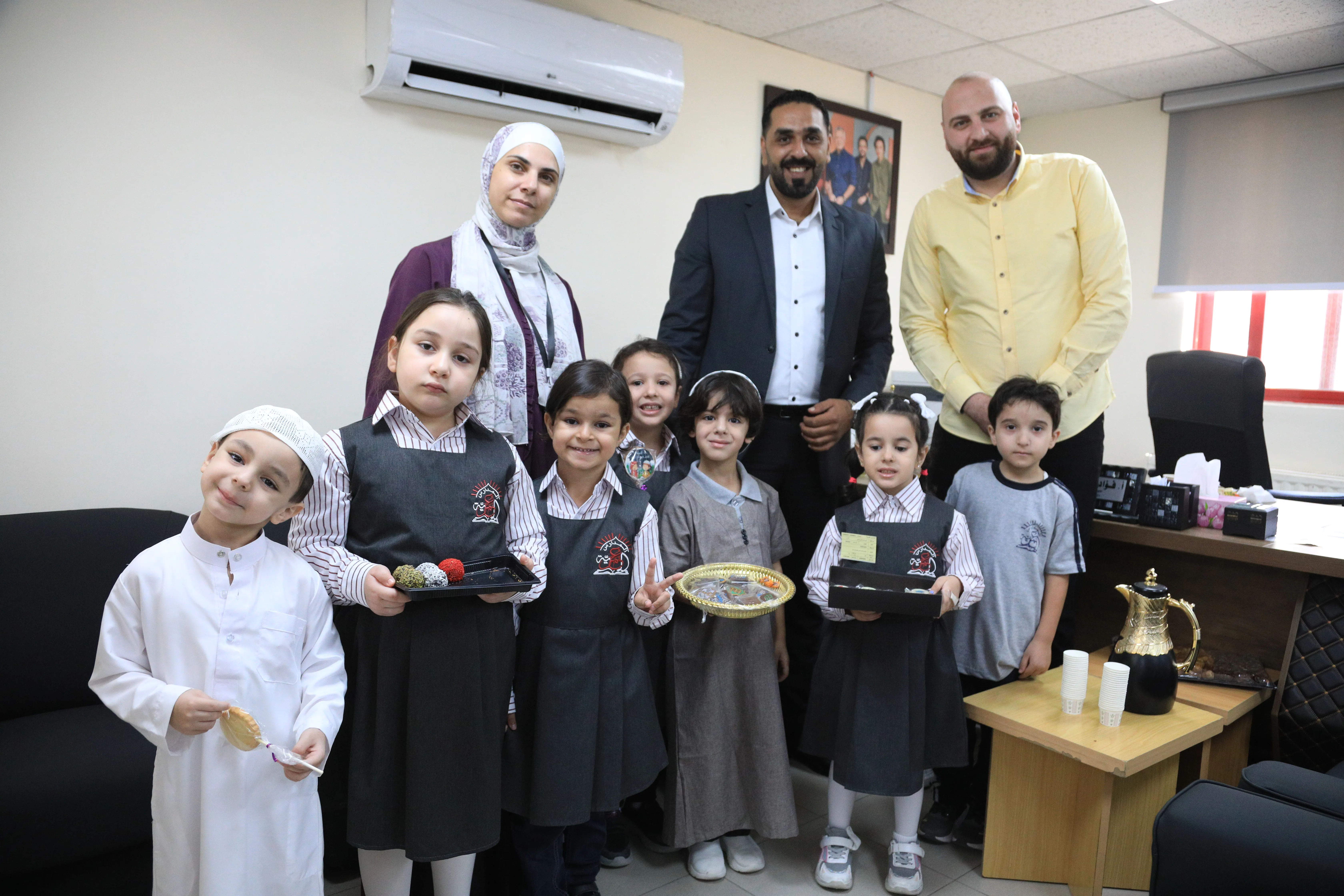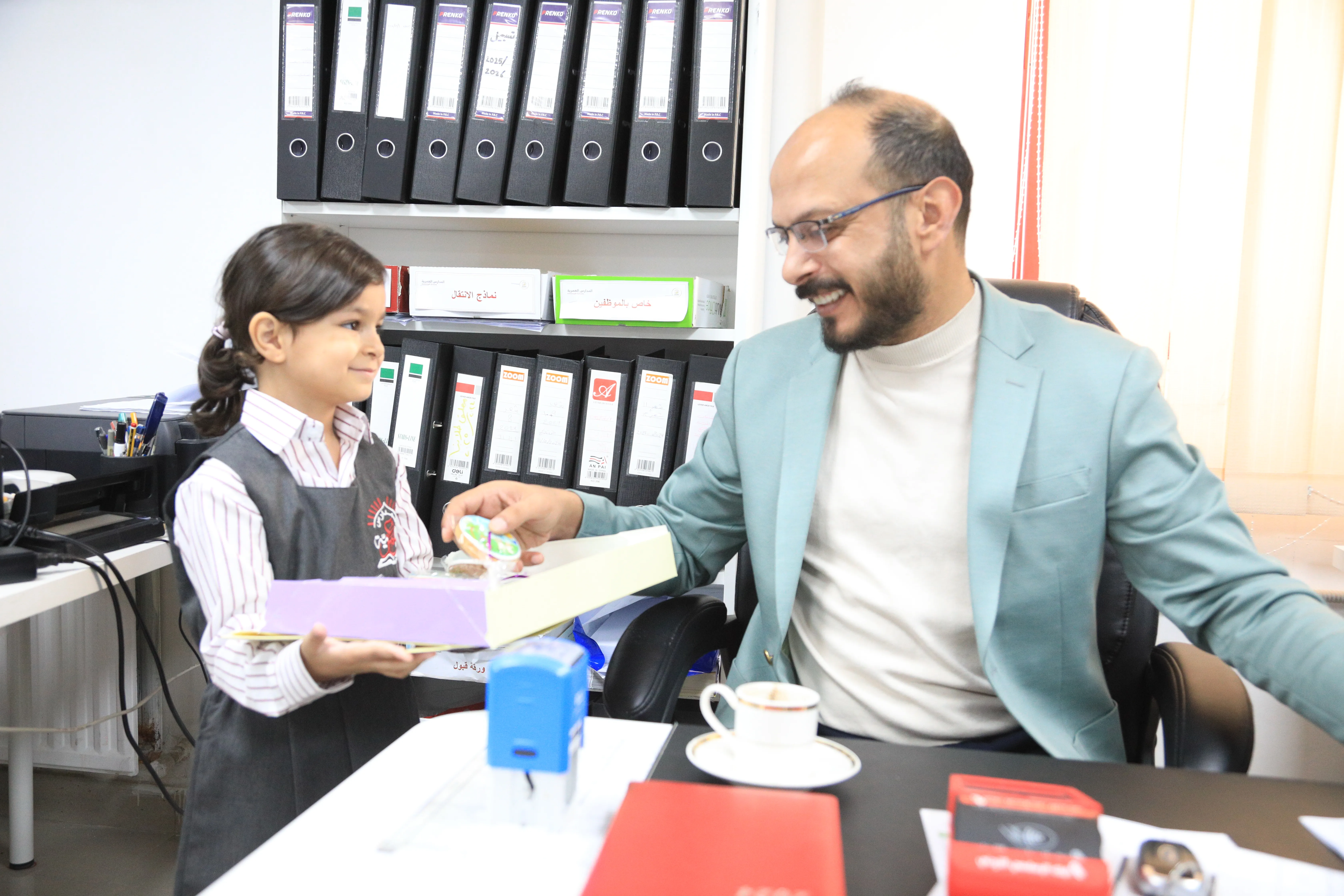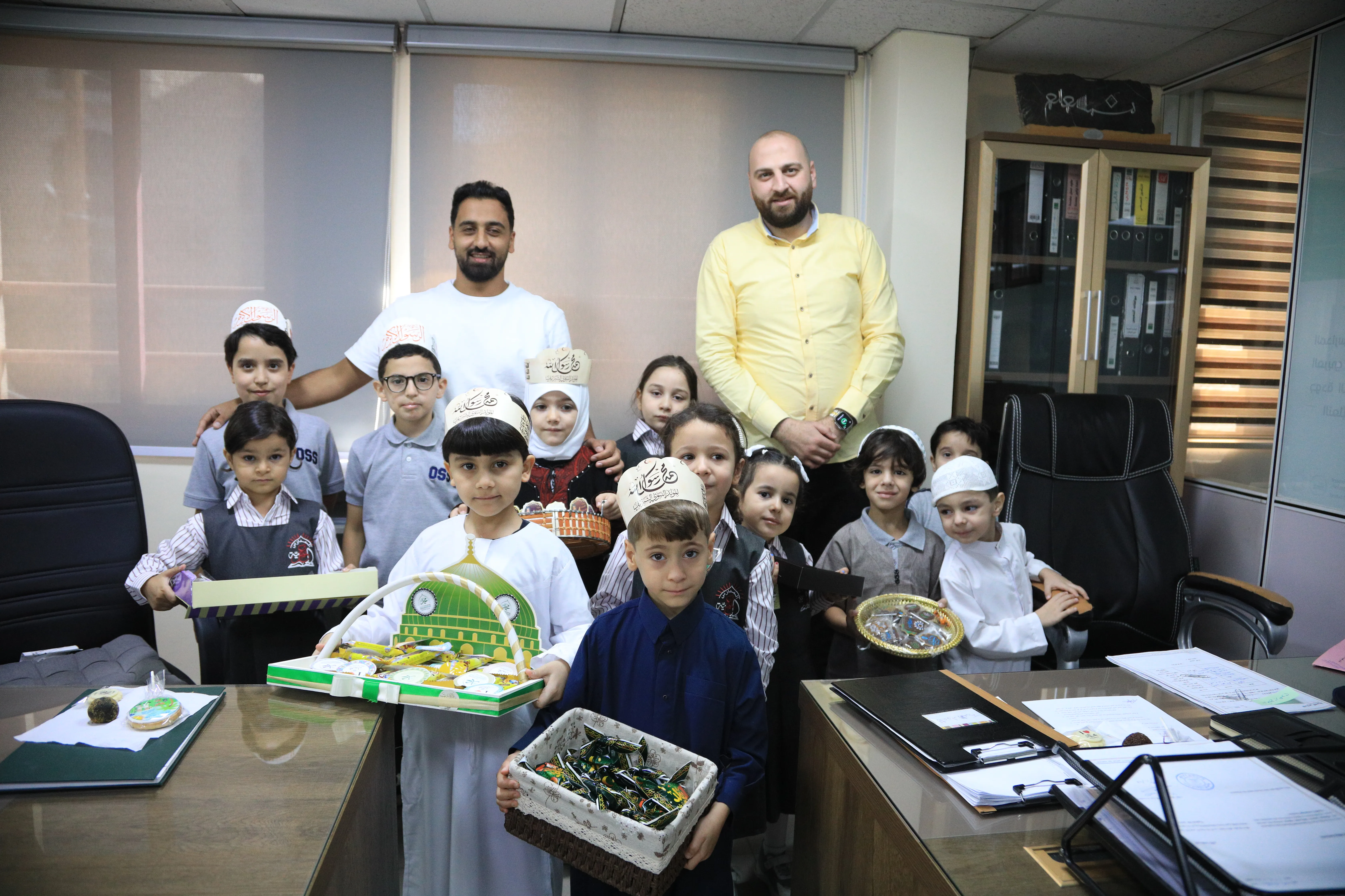 في أجواء مليئة بالفرح والروحانية، زار طلبة الروضة والأساسية الإدارة العامة، وكانت بداية جولتهم من مكتب المدير العام للمدارس العمرية الدكتورة هيام رمضان عيسى، التي أعربت عن سعادتها البالغة باستقبالهم ومشاركتهم هذه الذكرى العطرة. وجال الطلبة بعد ذلك بين أقسام الإدارة حاملين بهجة المولد النبوي الشريف ﷺ، ناشرين المحبة والاحتفاء بين الموظفين