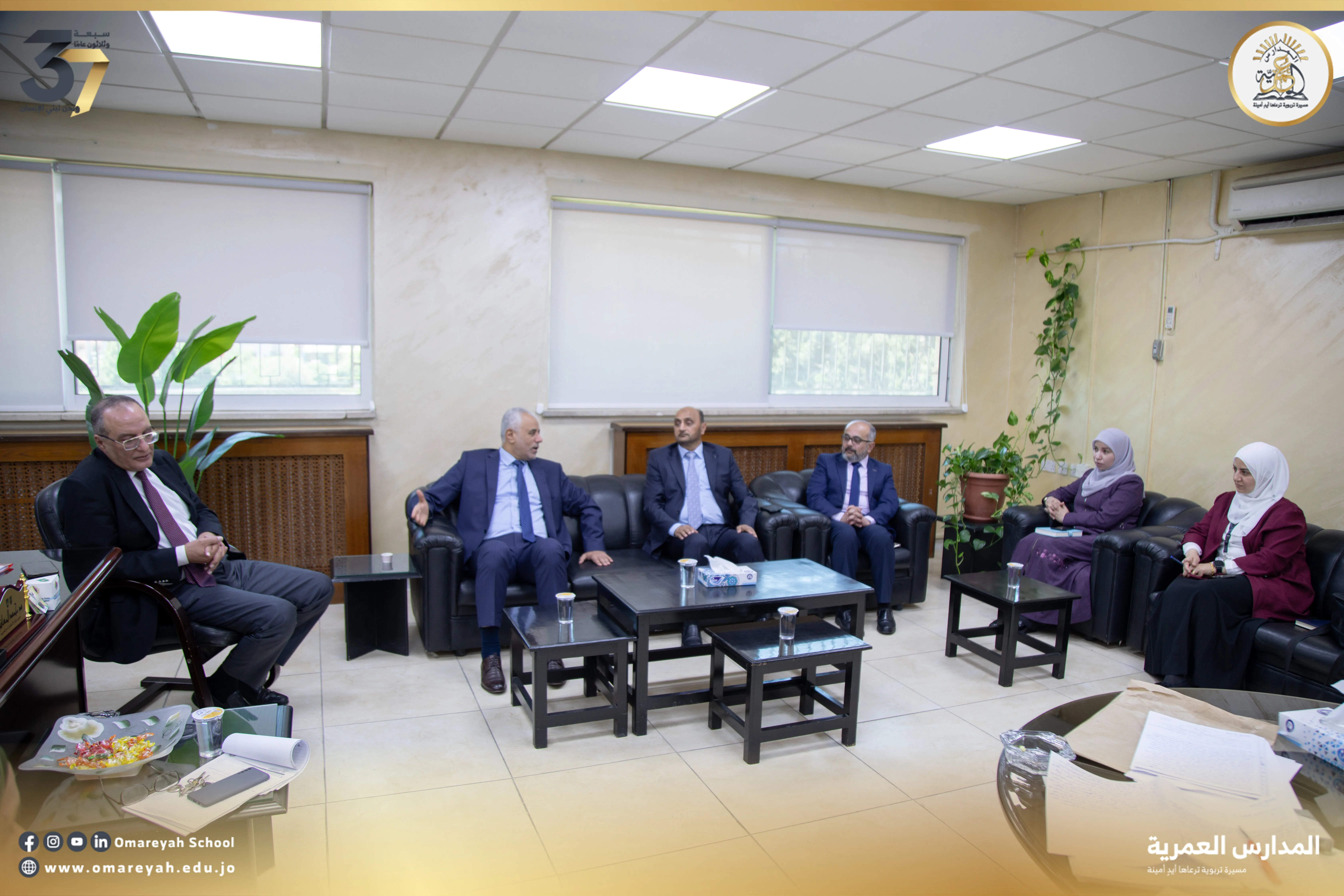Dr. Mohammad Al-Maqaba, Director of the Consulting and Training Center, welcomed the collaboration between the University of Jordan, represented by the Center, and Al-Omareyah Schools. It is noteworthy that Al-Omareyah Schools are preparing to launch the Teacher Training Diploma and the Educational Leadership Diploma for school leaders, as part of the professional development programs for teachers and school leaders for the upcoming 2024/2025 academic year, in cooperation with the University of Jordan.