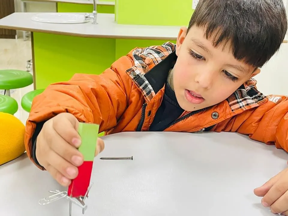 Observe, explore, think, ask, listen, look closely, take things apart and put them back together. In a fun and educational atmosphere, our kindergarten children learned about the concept of magnetism—what materials a magnet attracts and what it doesn't, the idea of attraction and repulsion, and the different shapes of magnets. All of this was explored through hands-on activities and experiments in the science lab.